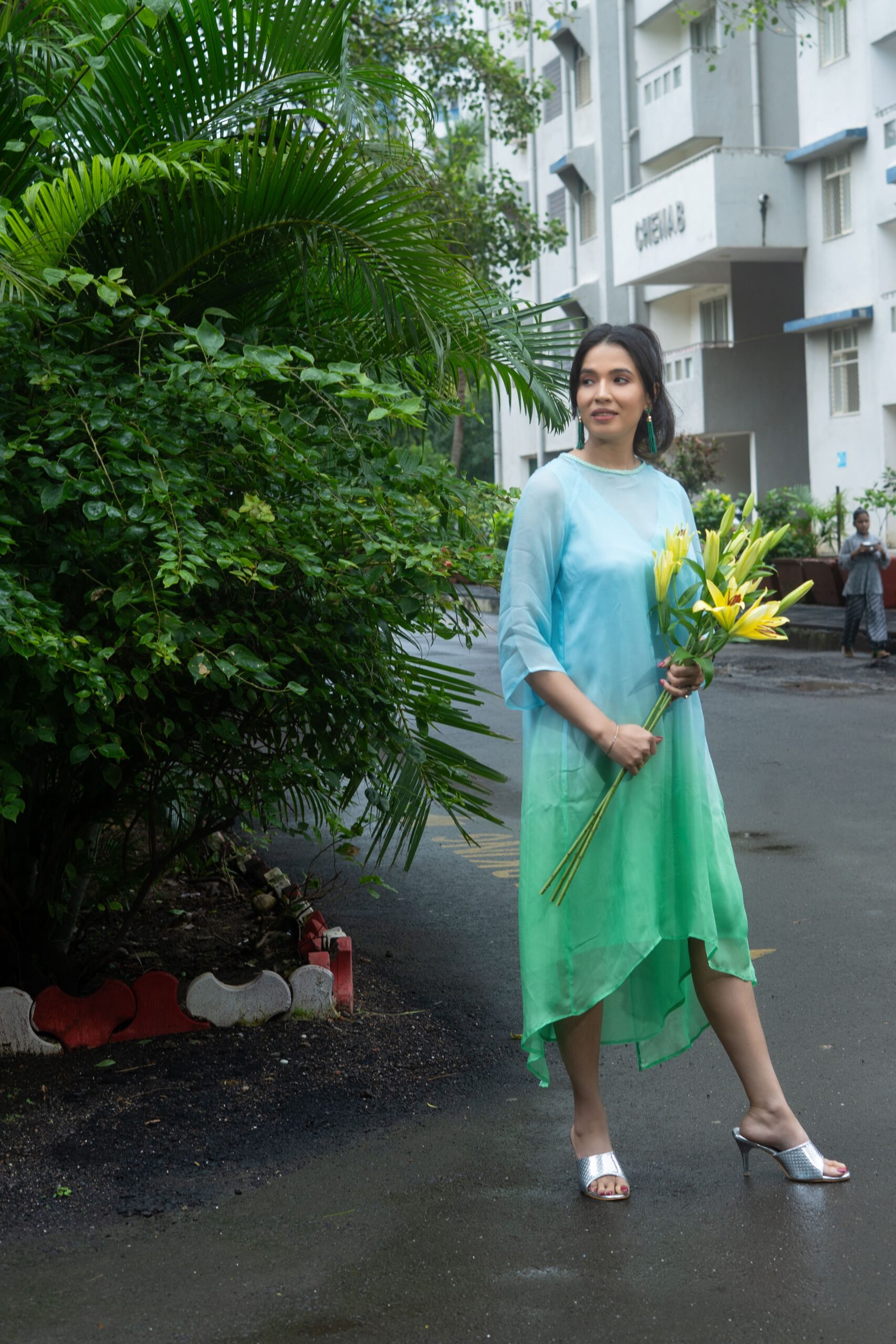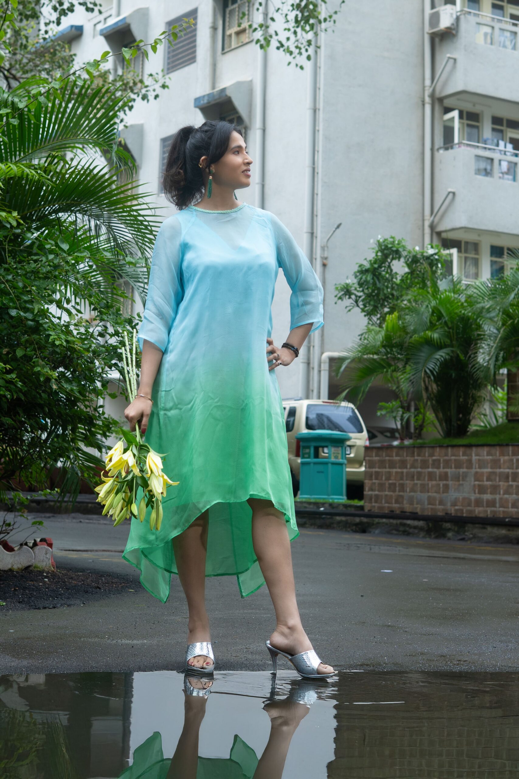 I bought the sky green ombre Luna Mist as a day wear dress. It is super comfortable thanks to the fabric that is light, soft and drapes well. What I love most is its playful and contemporary design – assymetric and unexpected. The cape is designed to worn different from how you would regularly wear it. The inner and the cape can be worn independently too allowing for multiple styling options.